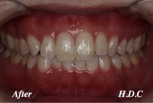 1回のオフィスホワイトニングで、数段階歯が明るくなったのがわかります。